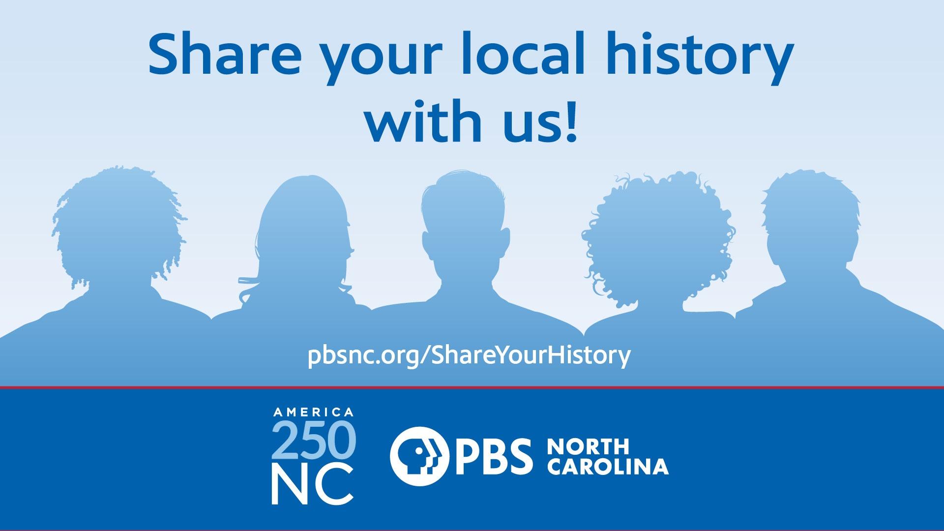 History belongs to all of us; and, PBS North Carolina wants to hear all about your local history, from family lore to stories about the people, places and events that have shaped your community. Your knowledge and insights will help guide us as we develop new content about our state's history.